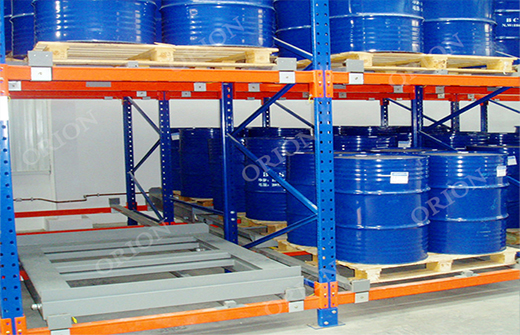 The main structure is similar to the pallet rack, but a special sliding trolley is installed on the beam. The pallet are placed on the trolley, which can slide smoothly on the track. The track usually has a certain slope so that the cargo can slide forward under gravity.