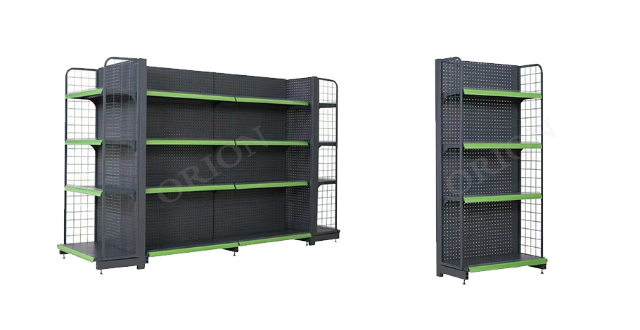 There are many categories of supermarket shelves, which can be divided into large supermarket shelves, standard supermarket shelves and convenience store shelves according to the size of the supermarket. According to the use of the location in the store, it can be divided into single-sided shelves, double-sided shelves and end shelves.