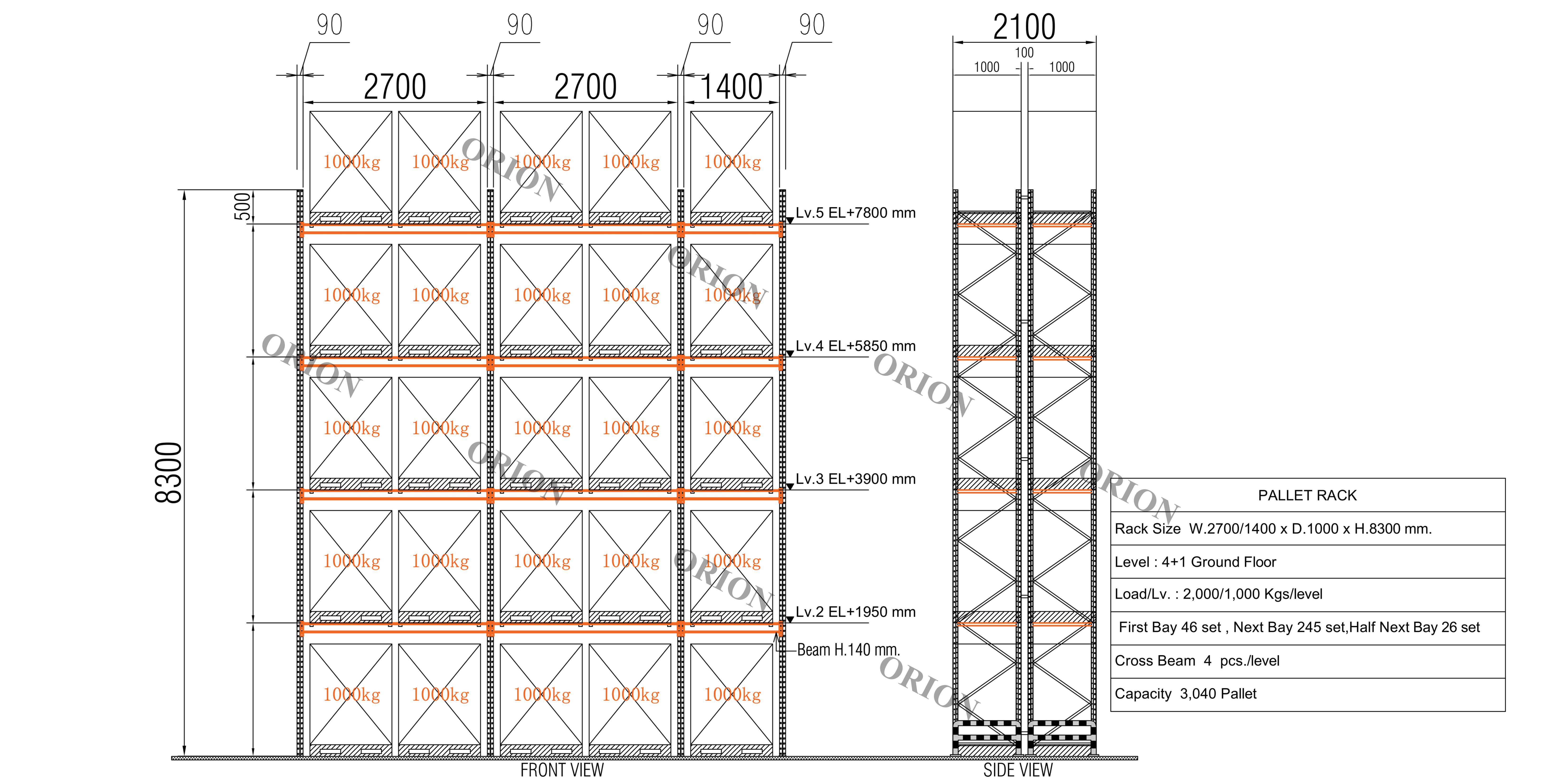| Shelf Dimensions: | L2700/L1400 × W980 × H8300mm |